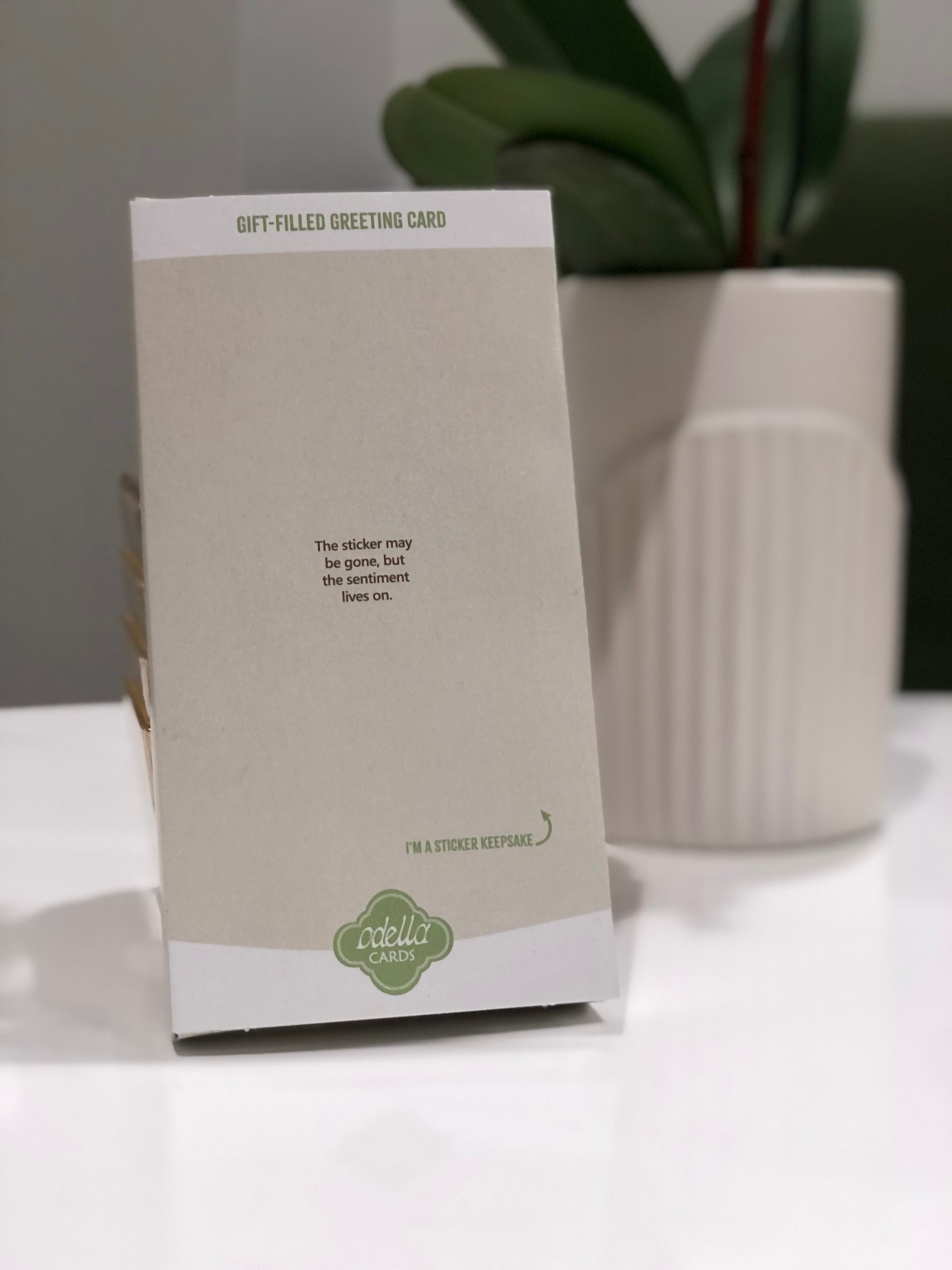 Sticker Greeting Card meets Gift Box! Fill with one of our small gifts. Great for adding oomph to gifting cash and gift cards as well.